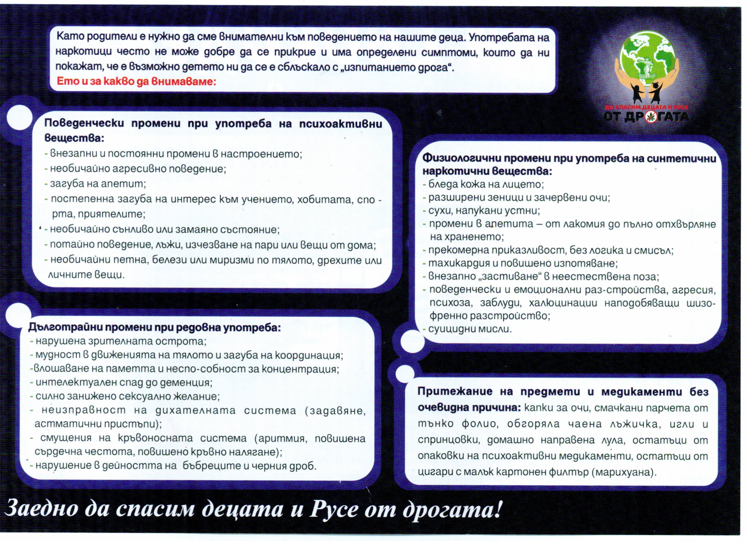 - Система за прилагане на Механизъм за повишаване на капацитета на педагогическите специалисти за подобряване на сигурността на средата в училище посредством предотвратяване на разпространението и употребата на наркотични вещества