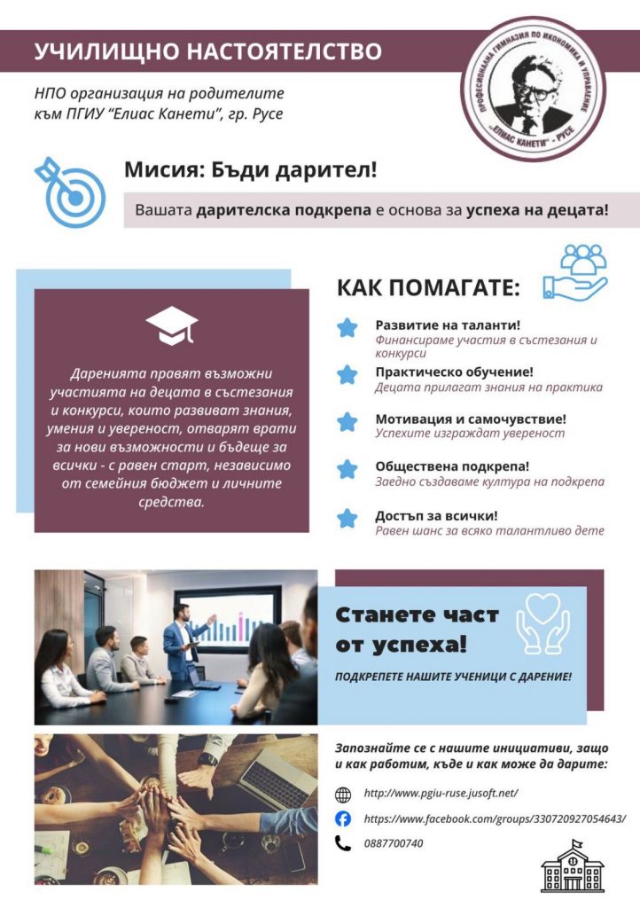 Титуляр: Училищно настоятелство при ПГИУ „Елиас Канети“ – Русе