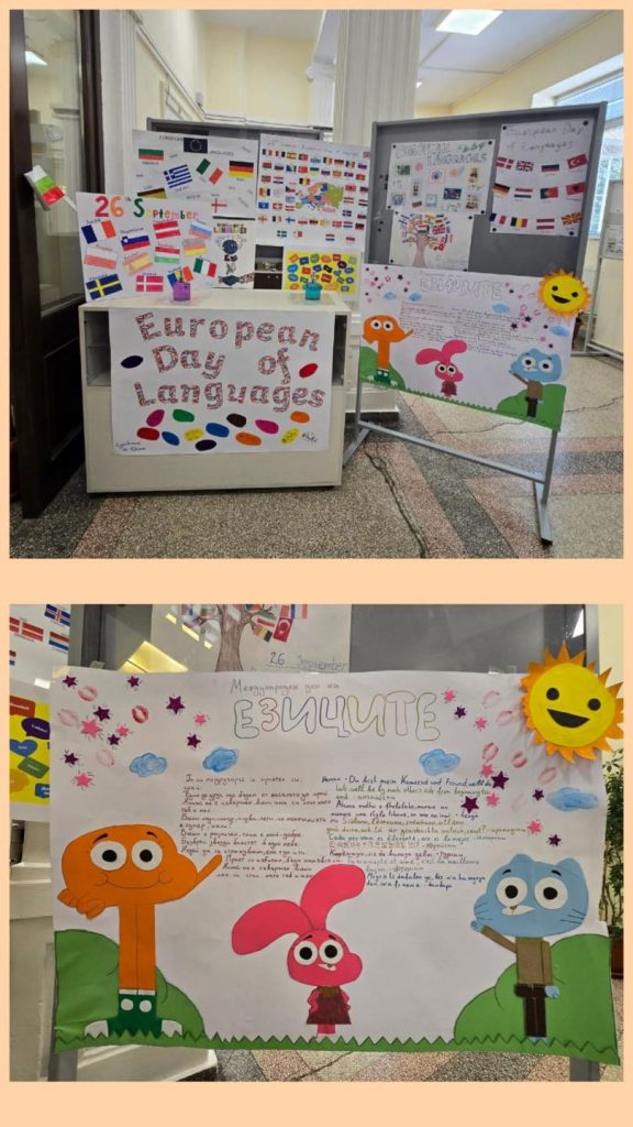 С голямо старание изработиха табла и постери, а във фоайето на гимназията оформиха празничен кът, посветен на богатството на езиковото многообразие.