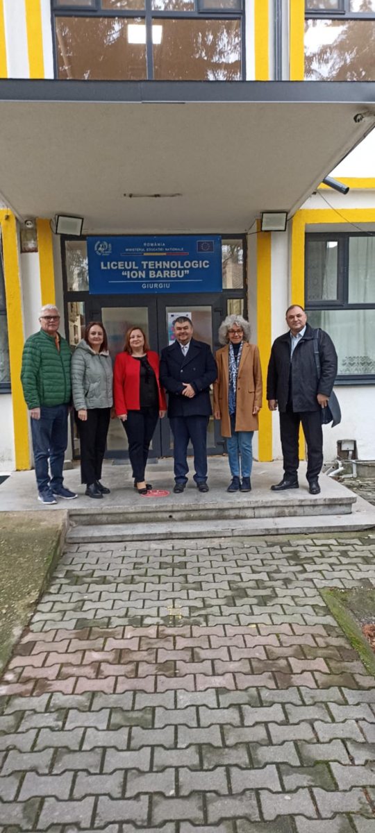 Първа среща в Гюргево, за възобновяване на сътрудничеството между Професионалната гимназия по икономика и управление „Елиас Канети”- Русе и Професионална гимназия с икономически профил „Йон Барбу” – Гюргево. Заедно с Тодор Йорданов – директор и Ангел Младенов – заместник директор, бяха посрещнати от румънските домакини Михаела Кържалиу – директор, Стеликъ Тобан – заместник-директор, Адела Колибъшану Адела – отговорник за ERASMUS+, координатор на европейски проекти.