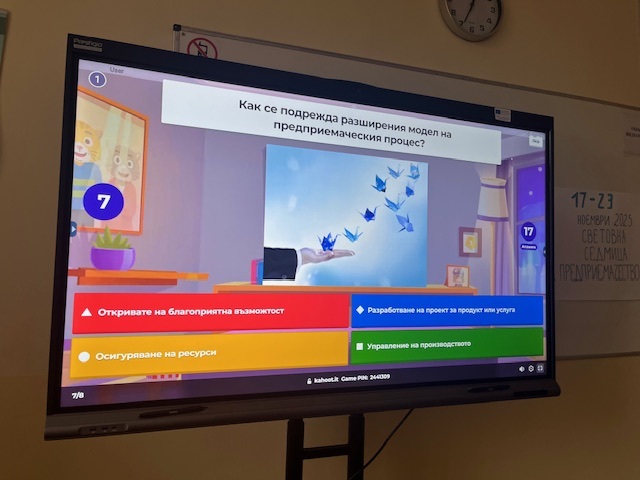 Часовете преминаха изключително ползотворно за всички участници, а учениците с нетърпение очакват да получат своите сертификати за участие в Световната седмица на предприемачеството.