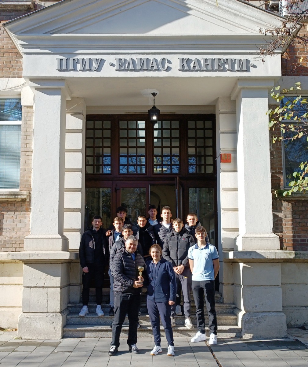 Отборът на ПГИУ „Елиас Канети“ – Русе, воден от своя ръководител Милена Керчева, постигна впечатляващ успех и завоюва първо място. След изиграването на общо пет мача, в които записаха само една загуба, момчетата показаха изключителна екипност, дисциплина и отдаденост. Представянето им бе доминиращо и заслужено ги изведе на върха в класирането.