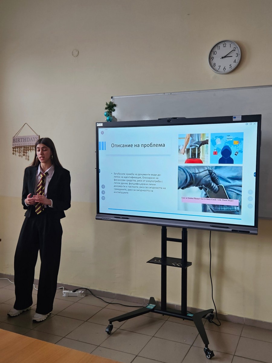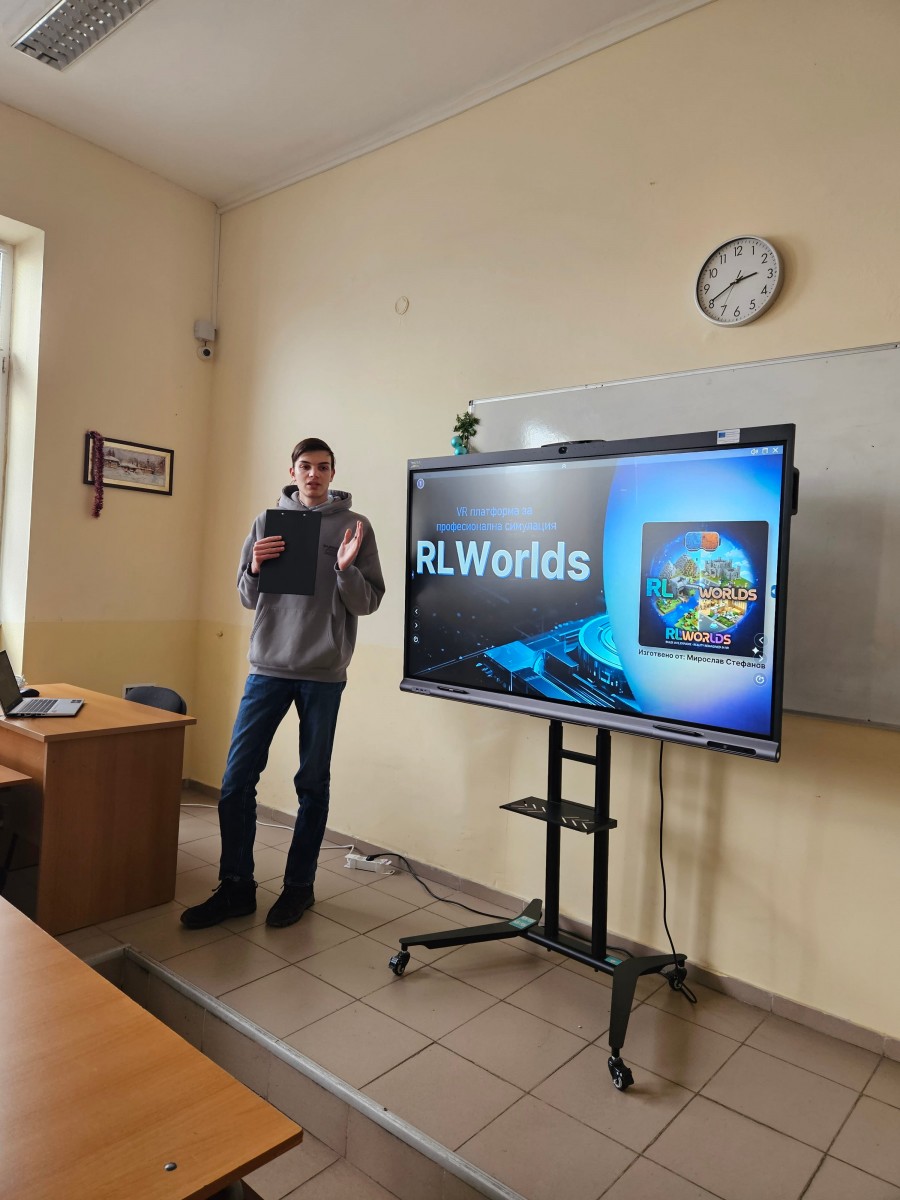 Своите иновативни идеи представиха: Мирослав Миленов Стефанов – “Свят на въображението”/“RL Worlds”, Преслава Цанимирова Михайлова – „Музей на стихиите“ „Elemental Voyage“, Преслава Цветелинова Цонева – Платформа за дигитална идентичност и защитени разплащания „Digital Identity & Secure Wallet Platform“ от XII а клас и Василена Пламенова Христова – Слушалки за сън „Sono Wake“ от XII а клас.