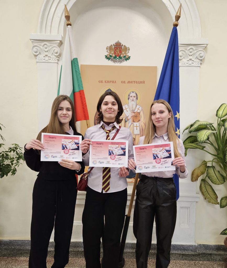Отбор „IPPON“ – участници: Василена Пламенова Христова, Татяна Емилова Иванова от XIа и Рамона Славова Славова от XIв клас, с резултат – 7.34, с ментор- г-жа Анета Ангелова