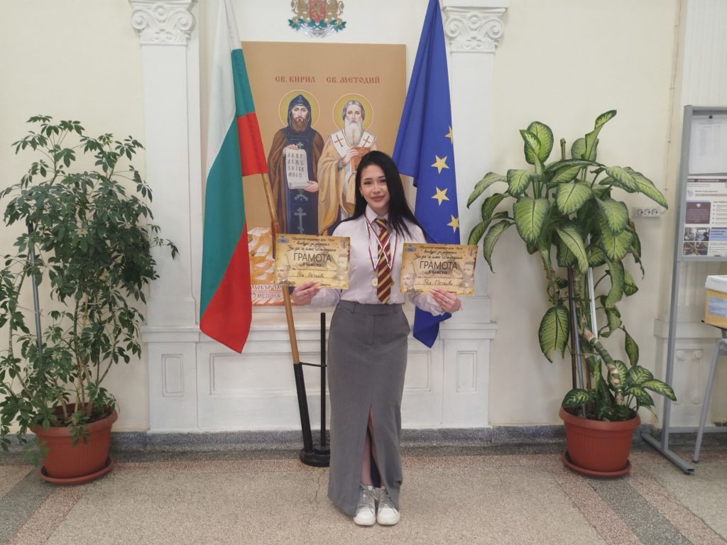 Рая Петкова, ученичка от 10. А клас в ПГИУ „Елиас Канети“, постигна впечатляващ успех в 22-рото издание на националния рецитал „За да я има България“. Със своето вдъхновено и емоционално изпълнение тя спечели две първи места – в направленията „Възрожденска поезия“ и „Съвременна поезия“.